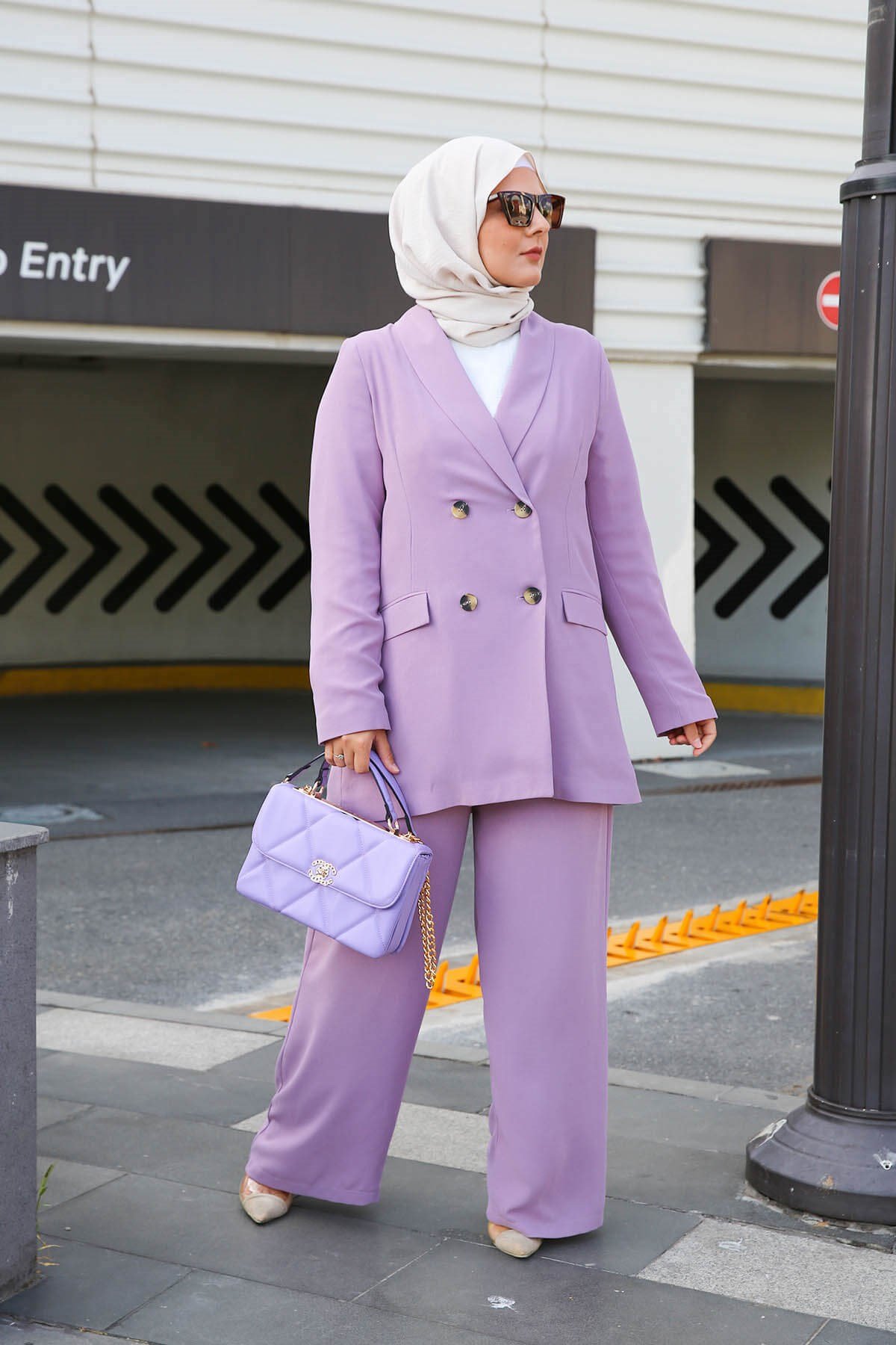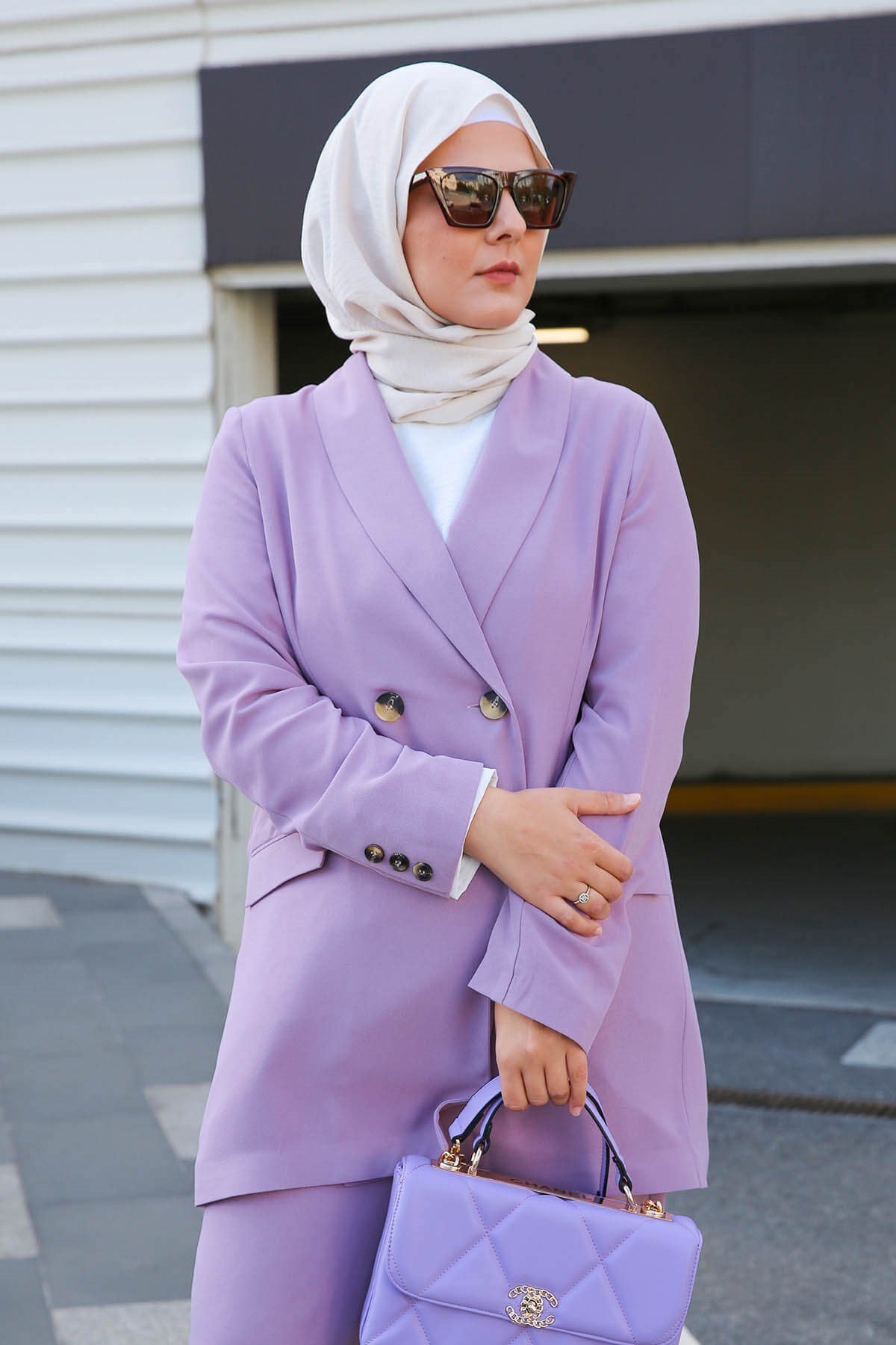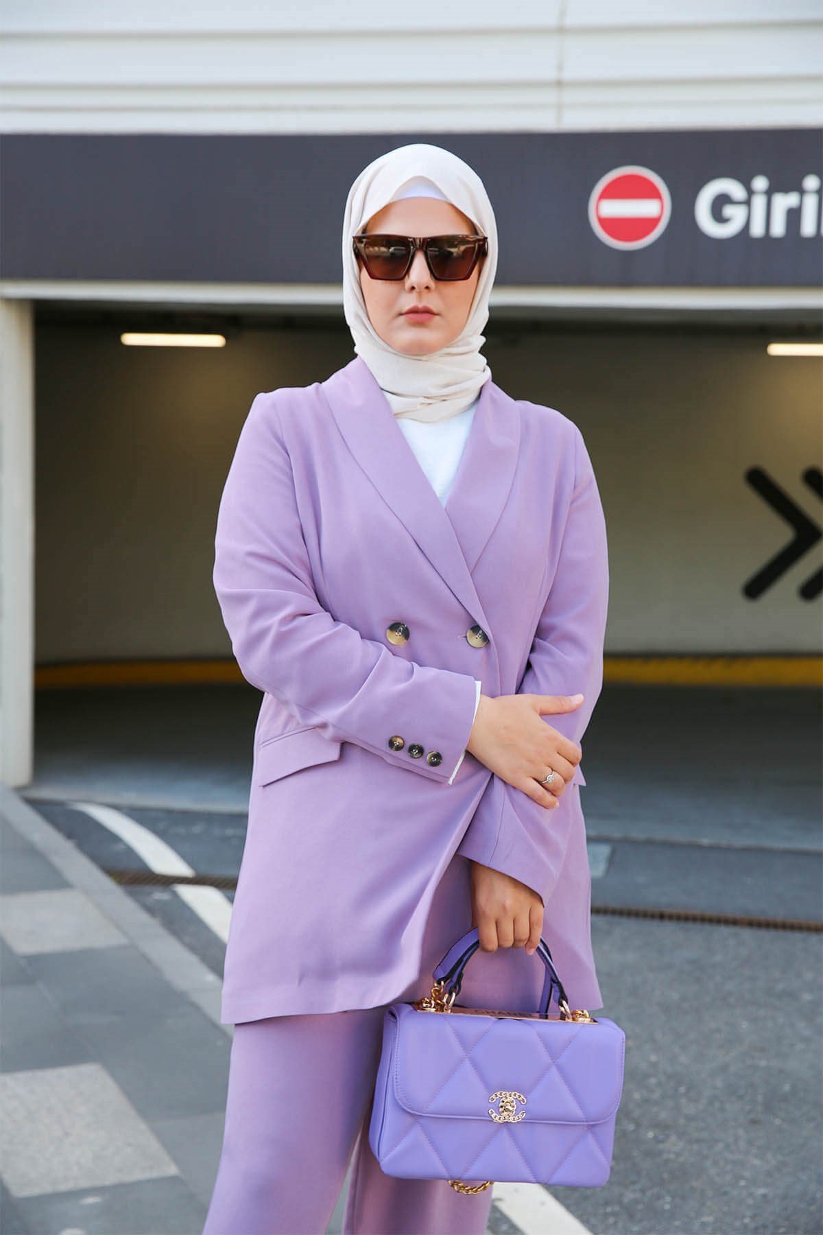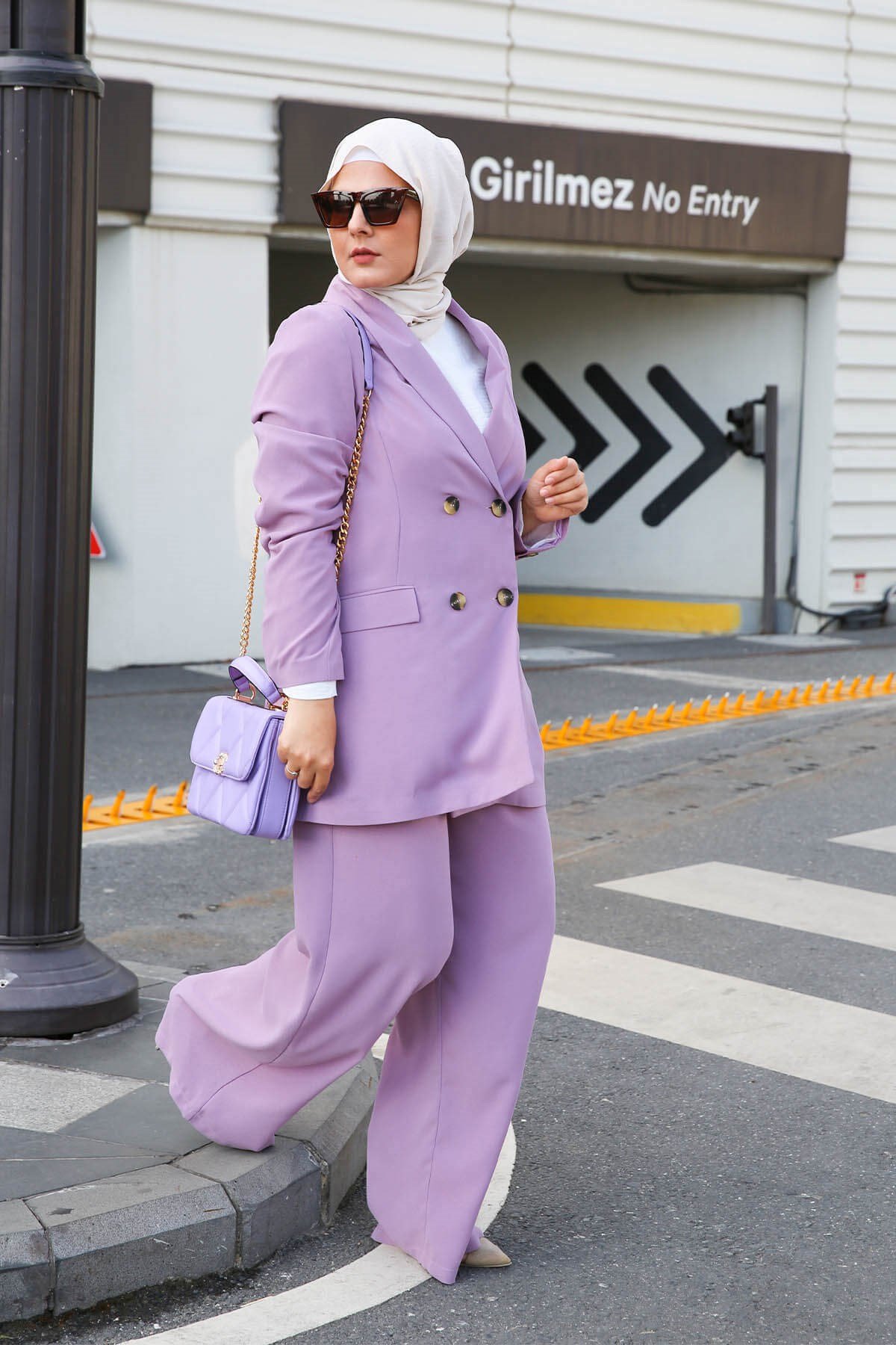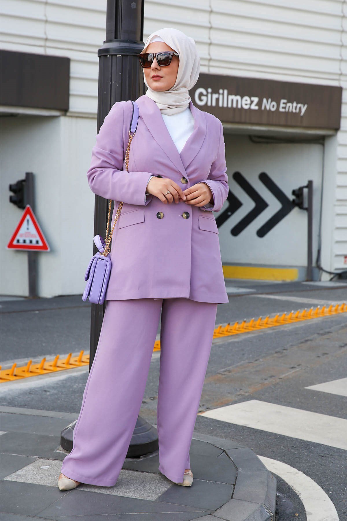 - Tailleur chic et décontracté à la fois, très agréable à porter. La taille du pantalon élastique seulement à l'arrière pour un meilleur confort. Le pantalon se ferme avec une fermeture et un bouton.