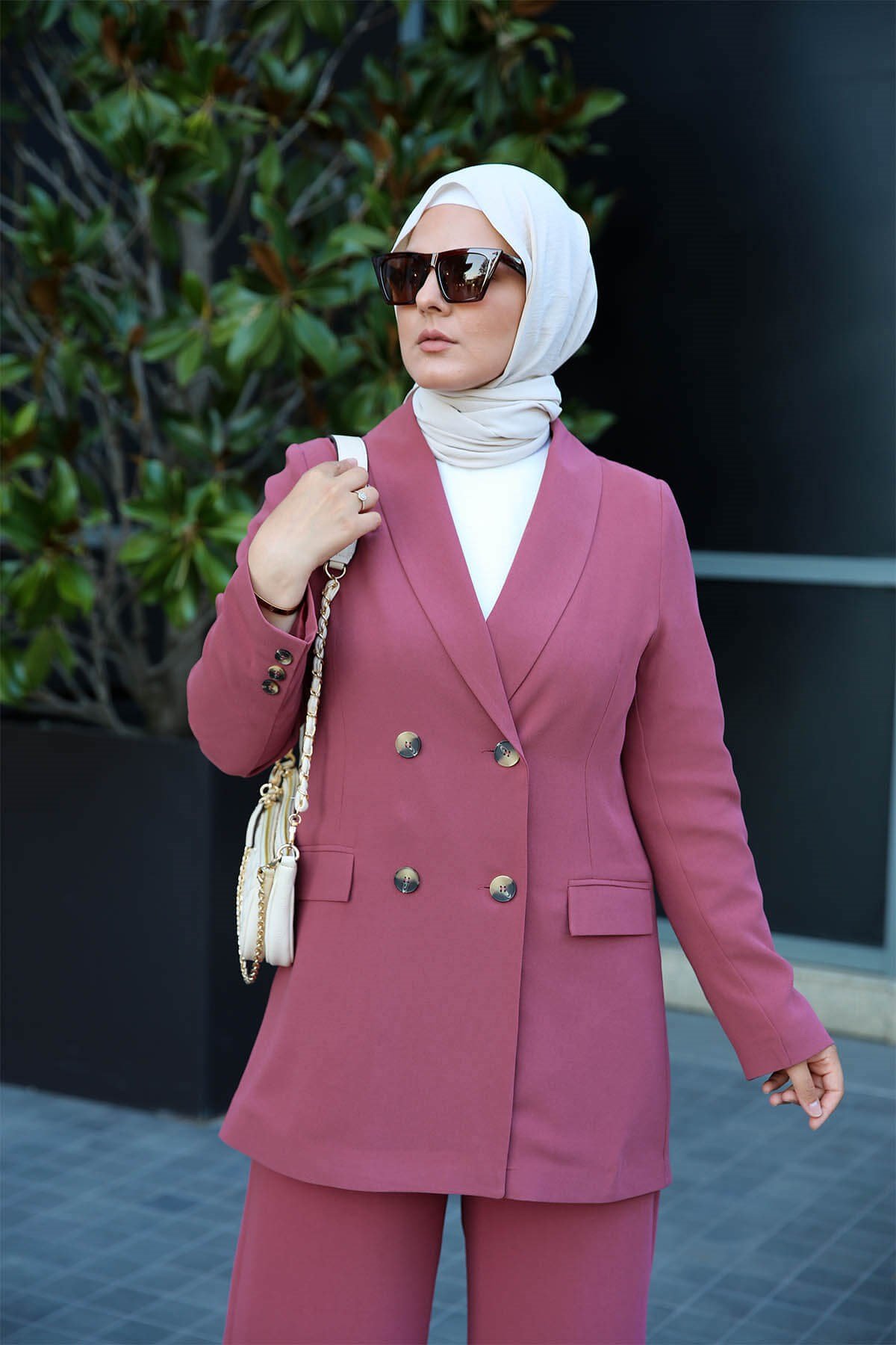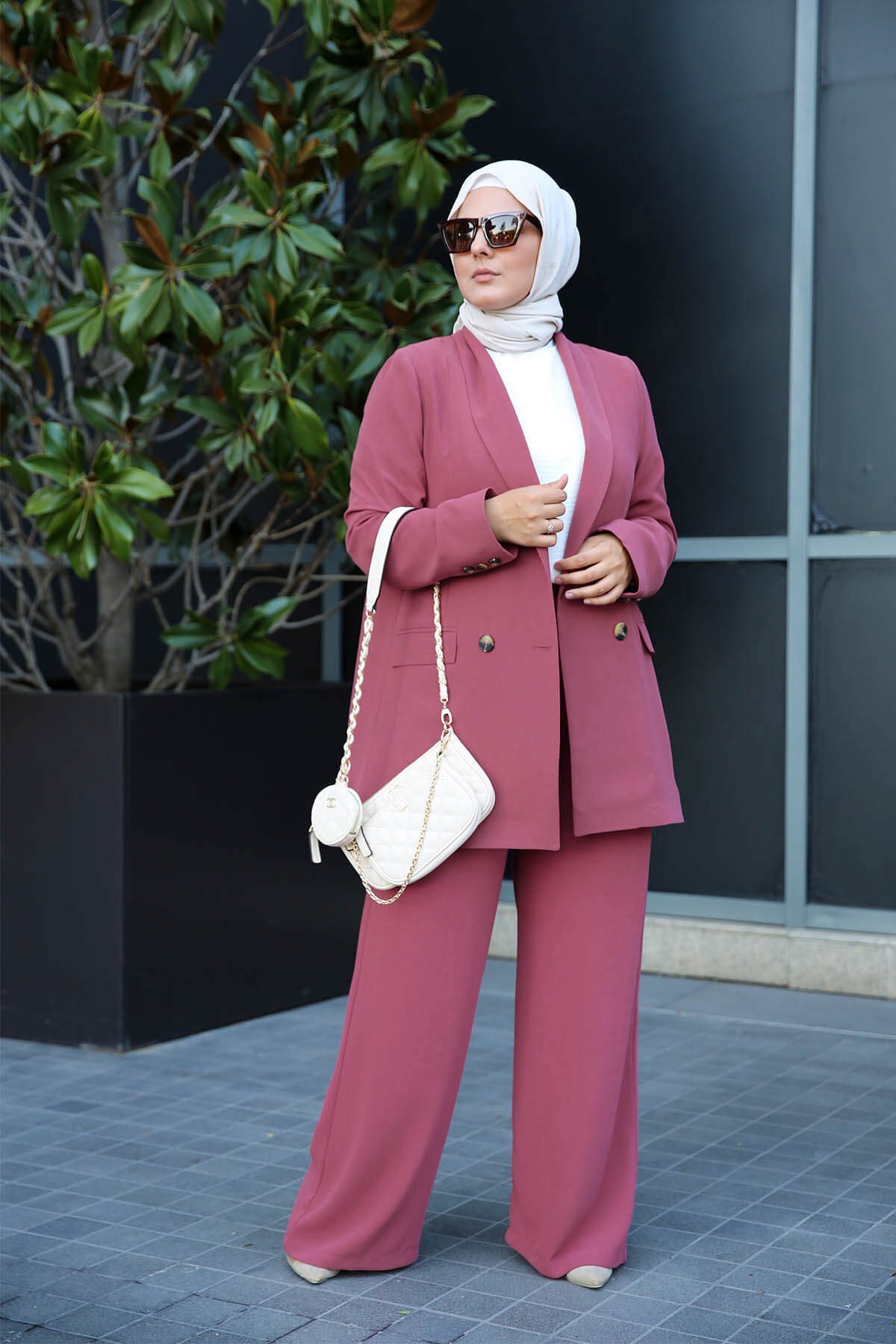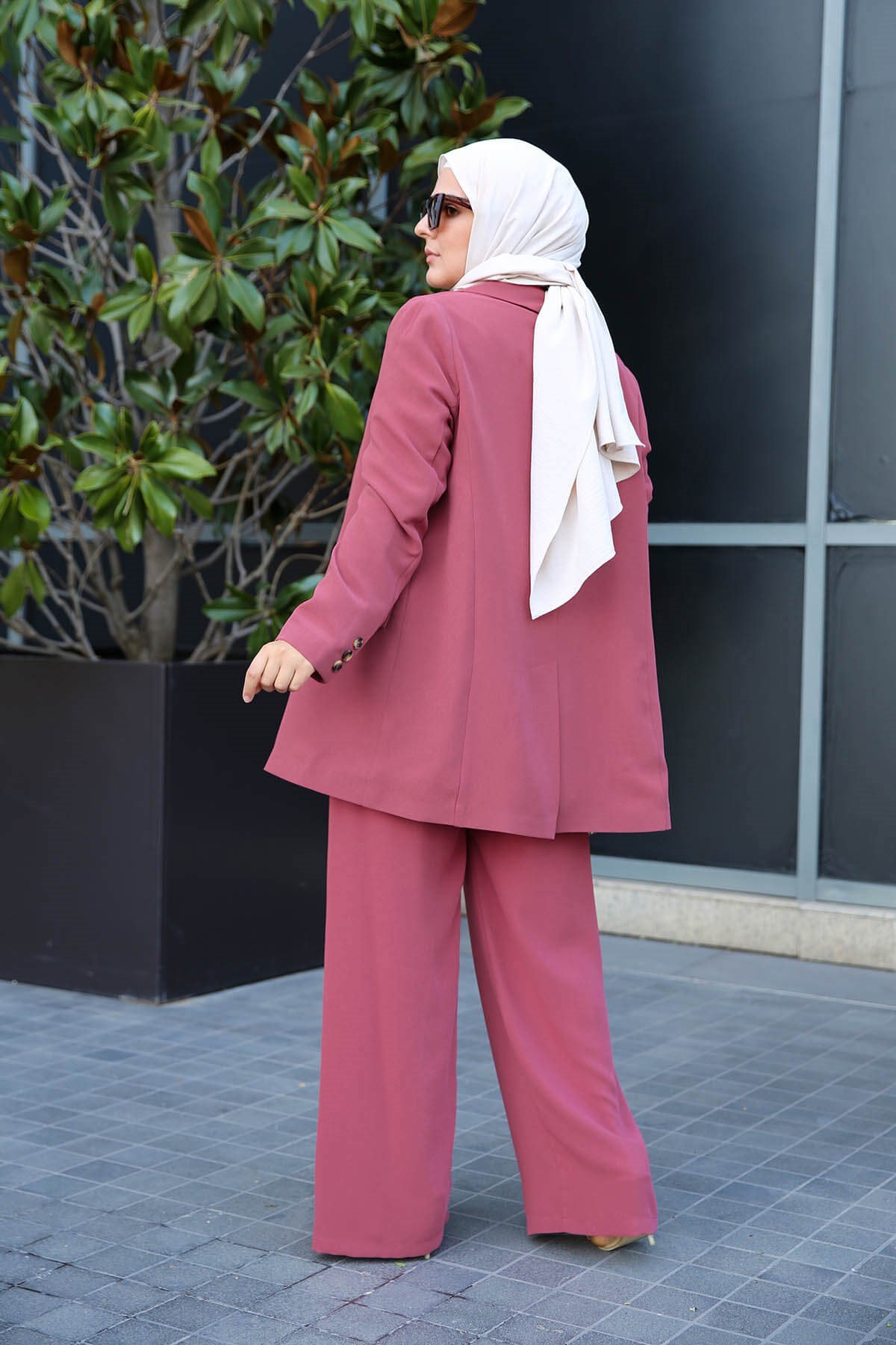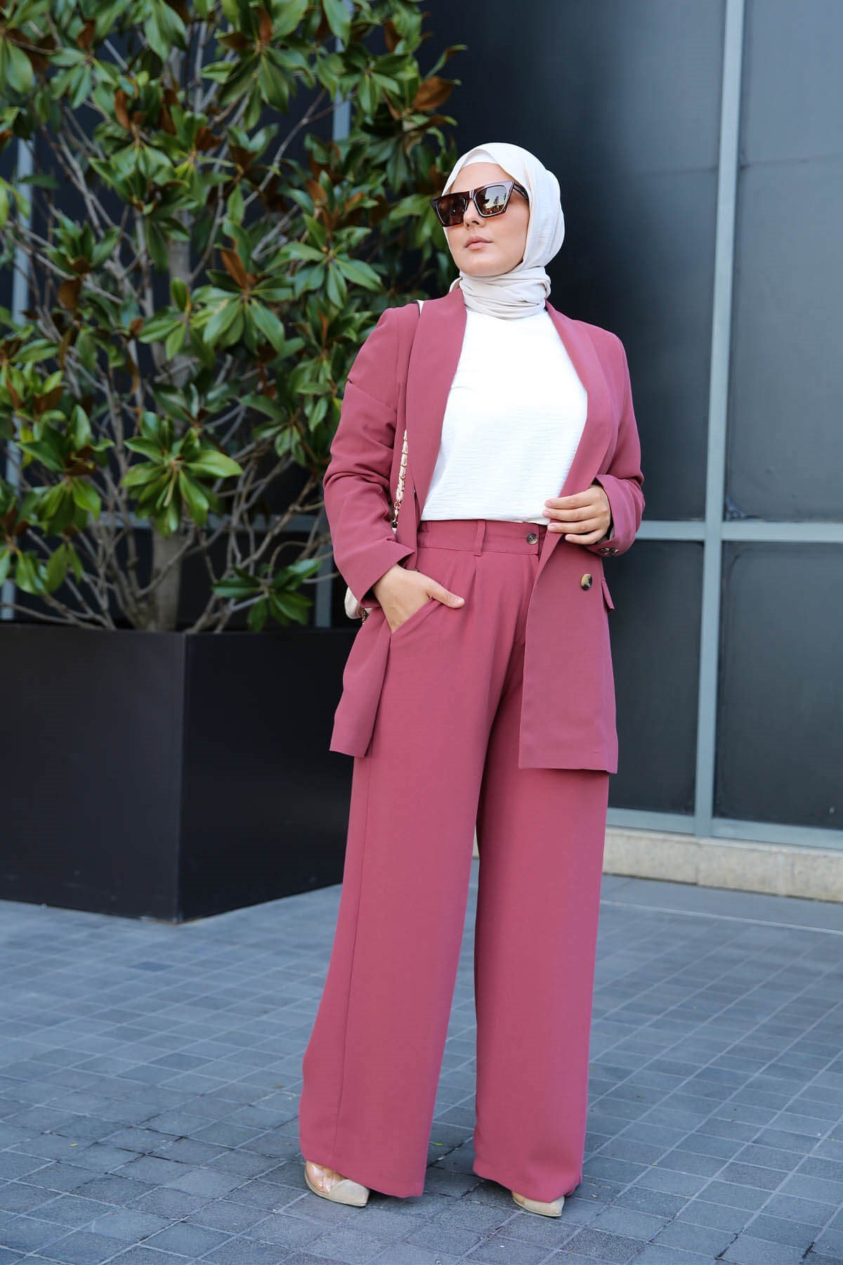 - Tailleur chic et décontracté à la fois, très agréable à porter. La taille du pantalon élastique seulement à l'arrière pour un meilleur confort. Le pantalon se ferme avec une fermeture et un bouton.