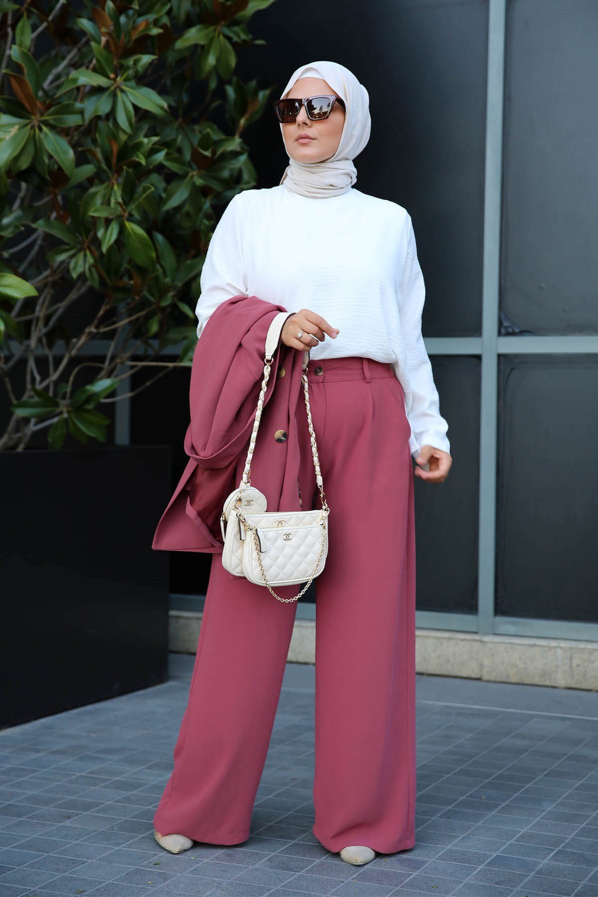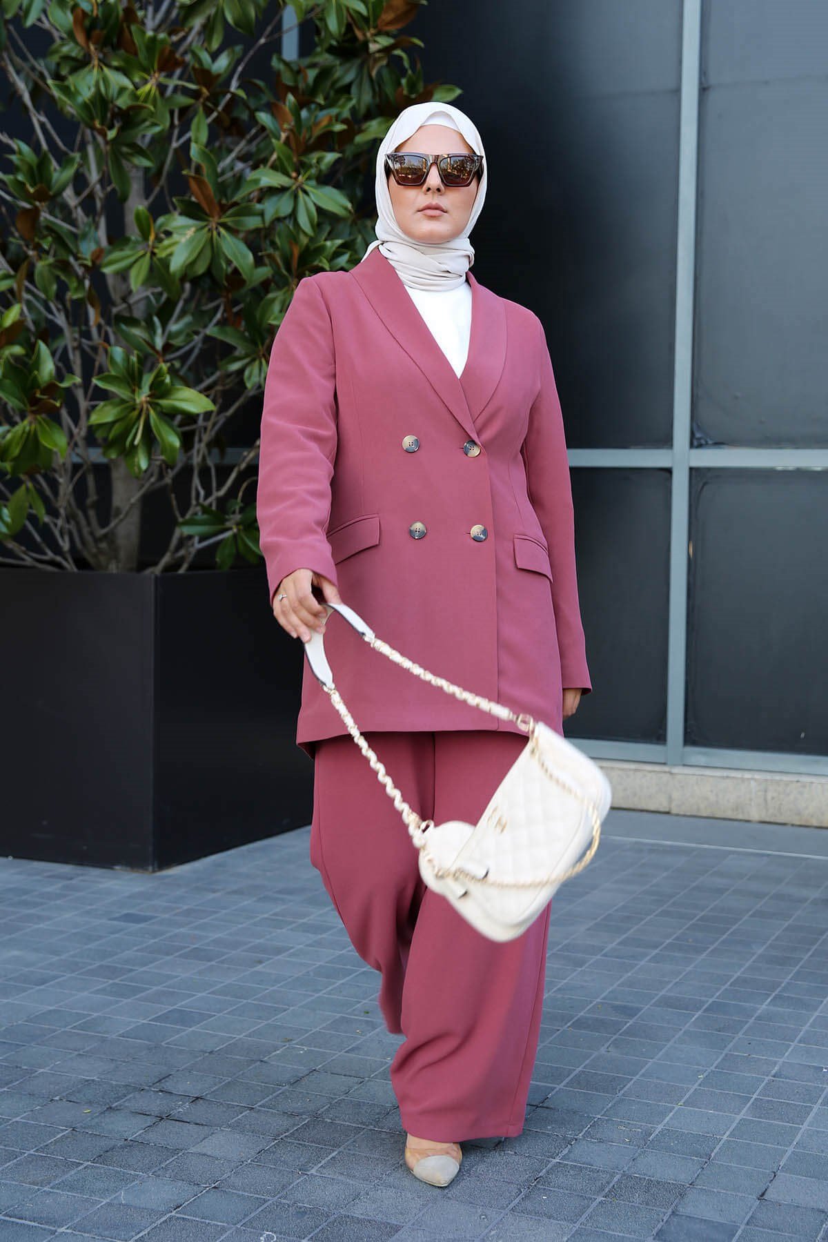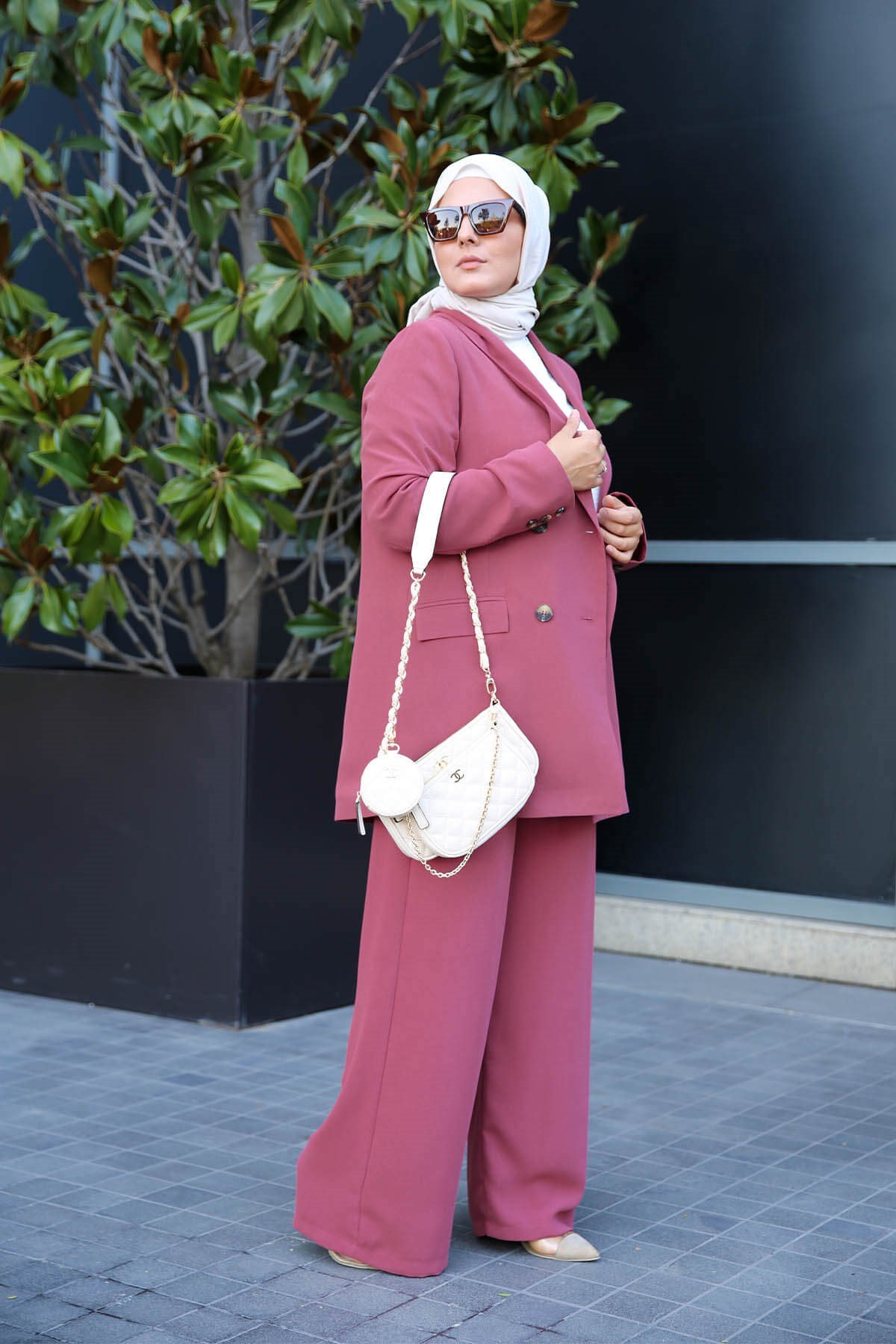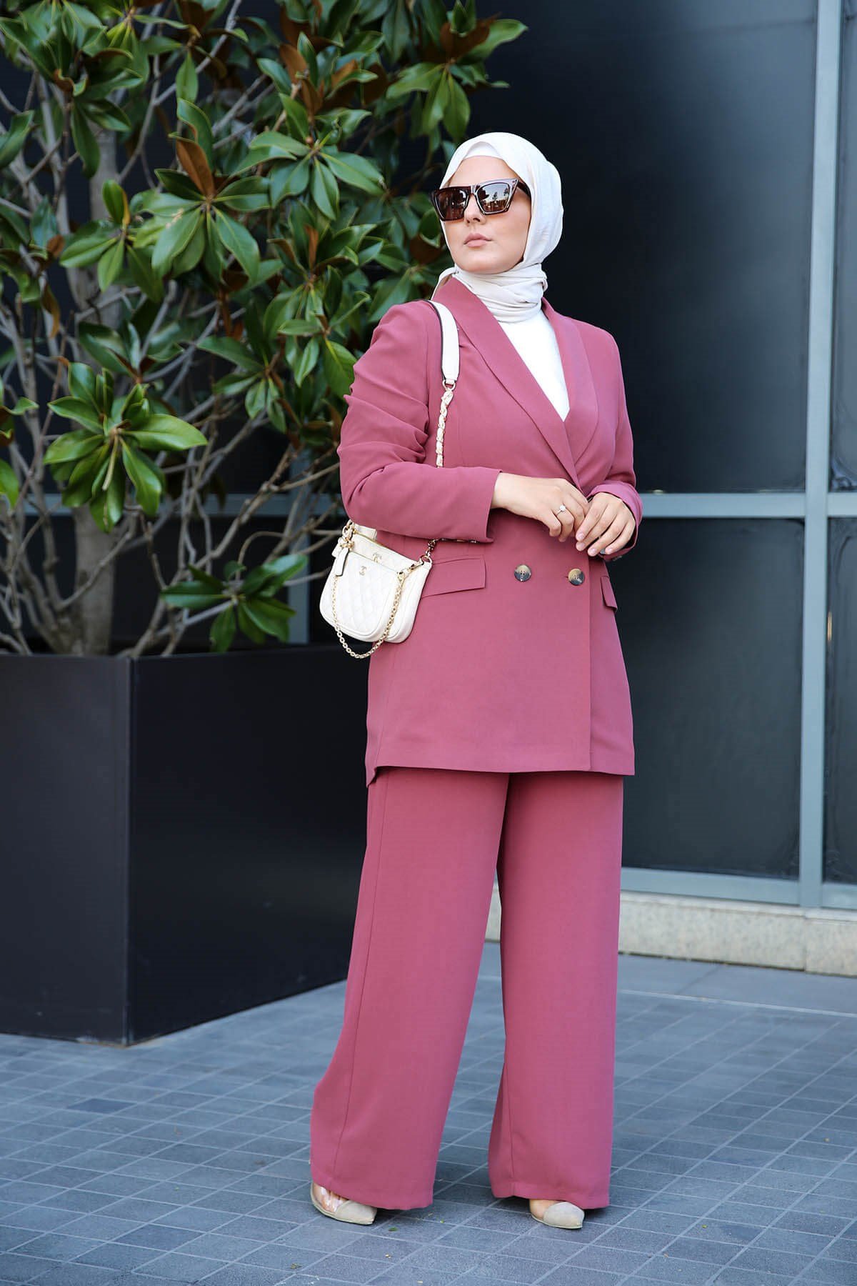 - Tailleur chic et décontracté à la fois, très agréable à porter. La taille du pantalon élastique seulement à l'arrière pour un meilleur confort. Le pantalon se ferme avec une fermeture et un bouton.